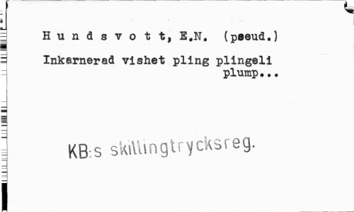 //// j Hundsvott, B.N. (pseud.) //// i Inkarnerad vishet pling plingeli //// = plump... //// i KB:S skiUingtrycksreg. i ////