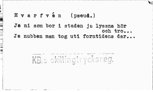 //// _ Hvarfvén (pseud.) //// 5 Ja ni som bor i staden ja lyssna hör i och tro... //// Ja nubben man tog uti forntidens dar... //// 5 //// 3 _ _ ___-... //// Kn - rt* - ron //// Q: C SftSU;» '.^jil ) ' "* J* ////