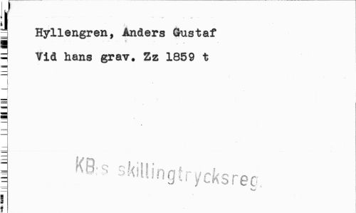 //// i //// | Hyllengren, Anders Gustaf 3 Vid hans grav. Zz 1859 t //// I //// 3 kb;s sWIlingtrycksrec. //// __V* //// | ////