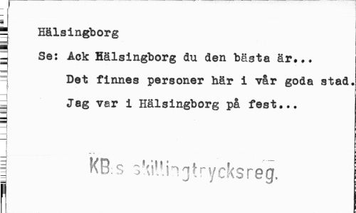 //// 5 Hälsingborg //// Z Se: Ack Hälsingborg du den bästa är... //// Det finnes personer här i vår goda stad, ; Jag ver i Hälsingborg på fest... //// 3 //// -j //// I //// I KB:S s Vill i n 31 r y eks r eg. //// i ////