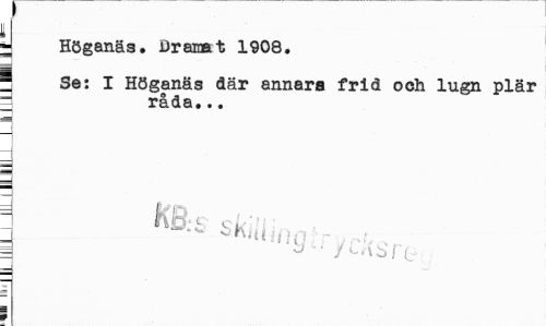 //// ; //// * Höganäs. Dramat 1908. //// ! Se: I Höganäs där annars frid och lugn plär 1 råcla... //// = /CfiSrc //// I ////