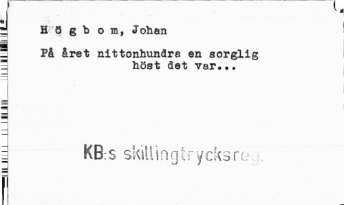 //// i 1 //// y H ö g b o m, Johan //// ! På året nittonhundra en sorglig ¦ höst det var... //// I KBs skillingtryeksre //// f ////