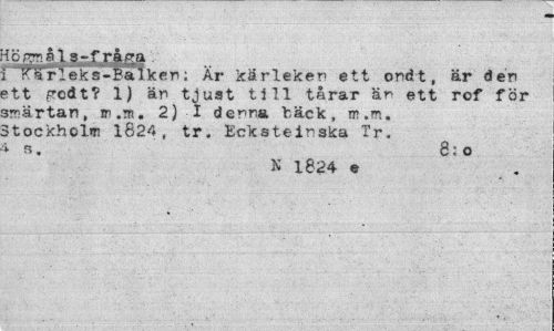 //// 1 äfsi i3 sa //// r*T5rTeks-BaIken: Är kärleker ett ordt, är den »tt p-odt? 1) än tjust till tårar är ett rof för srrärtan, di.™. 2) I der ra bäck, m.m. Stockholm 1824, tr. Eckstelrska Tr. i r . 8: o //// K 1624 e ////