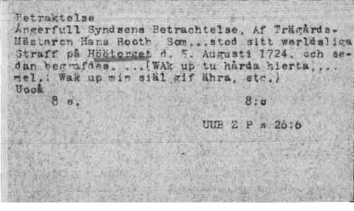 //// betraktelse ' _ .. . . //// Ån »-er full Synd sena Betrachtelse, Af Trägårds^ Mästaren Hans Rcot* 3om,..stod sitt «rWllif Straff på H^^figÄf * • T- Åu*u?ti dan be^fåta. I .. (WAk up tu härda hierta,, ... »tel.: Wak up min siäi gif ähra» etc.) Uooå, ' //// 8 a. //// UttE 2 P S 26:6 //// v - V • • ' - . . • • . • : "'c //// ' ¦': v .• ...v', . -" * . .•' *v; *v '• ;. :x< "• ////