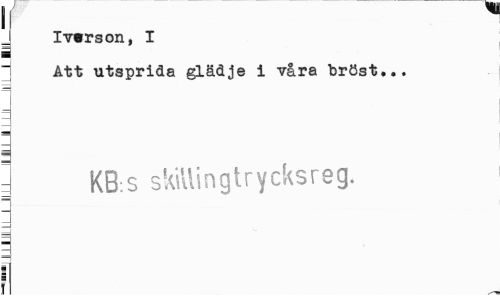 //// Ivwrson, I //// i //// Att utsprida glädje i våra bröst... //// " KB.s skiUingtrycksreg. //// = //// ¦ //// r ////