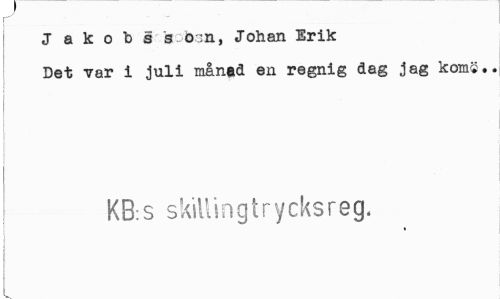 //// Jakobs is-bon, Johan Erik //// Det var i juli månad en regnig dag jag kom«., //// KB:s skillingtrycksreg. ////