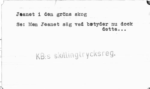 //// Jeanet i den gröna skog //// Se: Men Jeanet säg vad betyder nu dock //// detta... //// K8;s skaiingirycksreg* ////