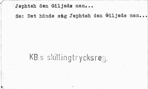 //// Jephtah den Giljads man... //// Se: Det hände såg Jephtah den öiljads man... //// KB s skillin g t r y eks re j. ////