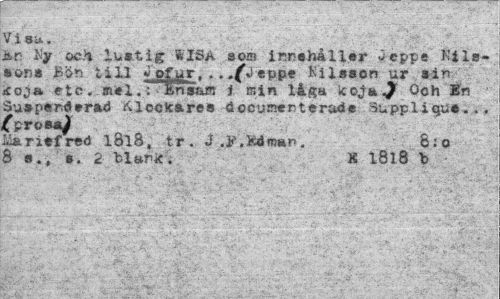 //// Vi si*.. //// hr. Ky och lustig WISA som innehåller Cieppe Kils-sons Bön till Jp-ffrtr. . .Ytteet Kilsson ur* ain icoja etc. anel.Tjfcns&m i min låga icoOch En Suspenderad Klockares docusicrterads Suppliqu»,.. £prosa^ //// Maritf red I8l8, tr . J .i\kdm*n. 6:0 //// 8 s., s. 2 blan*. K I8l8 b //// v ' " 'V- < : - , - *'*> v - //// • --• * - • - • - ' - ¦ •.«• ' ..." ' y; •• • . - • ••-...'- ////