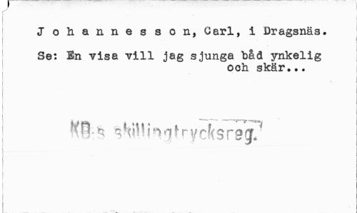//// Johannesson, Carl, i Dragsnäs. //// ¦ //// Se: En visa vill jag sjunga håa ynkelig //// och skär... //// ¦ //// i //// i i ////