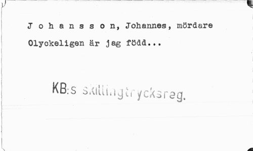 //// I 1 //// Johansson, Johannes, mördare Olyckeligen är jag född... //// KB:s sXilli.igtr/eksreg. ////
