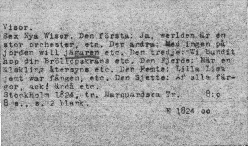 //// Visor. . //// Smx %a Wi»or. I>«n först»: Ja, *erlden åir er» • tor ,öreh««t*s% ,ete> Den Med ingen på - //// jordan wåll Jägagtft etc. Herr tredje: "i'i bundit hop din BrclTcpakrans etc. D>n ?jerd«; Er en älskling itersyn» etc. Der Femte: tillä Idsv j#mt *ar fången^ etc. Den Sjette: »t »11% färjor, aokf ärcå etc. //// Stockholm lB24-. tr. ^»rquards^a Tr. 8:c //// 8 ¦«., 8. 2 Mar* . //// ¦ * 1824 oo //// L . i!*'-:* '. , ..r" ^¦'•sS^iV" -r //// •.•••5, * " V-^-'-'^.. ¦ ..1 ¦ »".v > • //// ,vi ?'IvV^:" • C • V v ... ... : - ':•••/•'-. ' //// - isaäEVJE i- •->.-.. tK ¦ ::U - ti w^k-VSv* .. . t.-• . i- .>-¦ - k/iSStr-JBr • * . • ".. .,. l ////