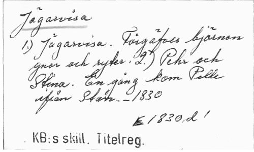 //// "1. ^ / A q a^zp^i Gs //// j^Ä.. ¦ KB:sskitl. Titelreg. ////