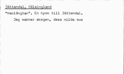 //// 3ättendal, Hälsingland "Hemlängtan". En hymn till 3ättendal, 3ag saknar skogen, dess milda sus ////