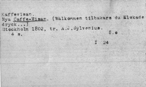 //// Kaffev i san. //// Nya Hfif f>-Wj aap- (WäIkonmen tilbakars du älskade d ryck...) //// Stockholm 1802, tr. A.J.Sylvenius . //// 4 s. 8.0 //// I 24 ////