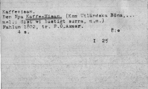 //// r . —¦ //// Kaffevisan. //// Ben Kva fitfifi^tti*^- (Kom Utländska Böna,... mel.; 3i30*1 lustigt surra, m.m.) Pahlun lB02, tr. P.O.Axmar. //// | 4 S. g;o //// j .12? //// | V. . >: ^ " ' ' '' ' ' ' ' . .- . ////