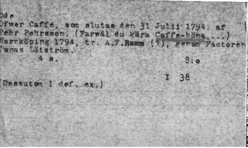 //// "v:-..- 3Ä -i f^v,"i -to-"s ¦ "• ' • ' -t'. ' //// Ht .1f . //// )fwer Caffe, scw slutas den 31 Julii 1794; af ' >ehr ?c\rasen. (?arwdl du kära Caffe-hör* .. ) Jorrköpiti* 1794, tr. A.F.Rw» {fffW^PMt^m o na g Lo t Ström. //// 4 a. 8:o • //// J 38 //// Iteasutén 1 <Jef* a*,)" //// \ .v. - " 'j i - *'.•'" -hJt^V- t . '.• ' .' • • ' • .--.•- • *• ////