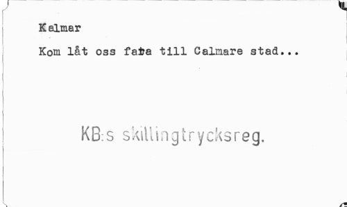 //// t ^ Kalmar //// Kom låt oss fafca till Calmare stad... //// i KB:S skillingtrycksreg. ////