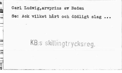 //// I //// I Carl Ludwig,arvprins av Baden //// Z Se: Ack vilket hårt och dödligt slag ... //// | KB.s skillingtrycksreg. ////