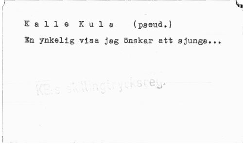 //// ( //// Kalle Kula (pseud.) En ynkelig visa jag önskar att sjunga... ////