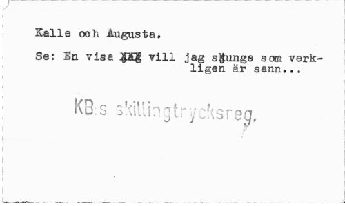 //// 1 //// Kalle och Augusta. //// Se: En visa vill jag sjunga som verkligen är sann... //// KB.s sMUingtryeksrejf, //// 1 | ////