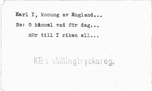 //// Karl I, konung av England... Se: 0 håmmel vad för dag... Hör till I riken all... //// I KB.s skillinglrycksreg, ////