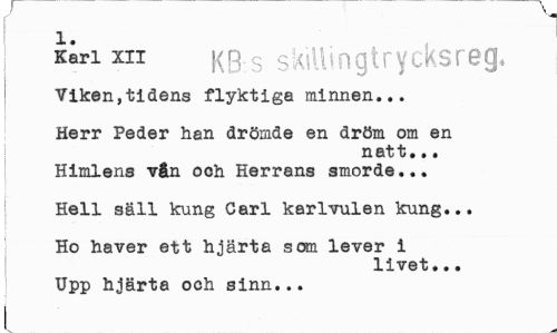 //// [' //// Kin xii kbs s kiU i n g t r y eks re g* //// Viken,tidens flyktiga minnen... //// Herr Peder han drömde en dröm om en //// natt... //// Himlens vtn och Herrans smorde... //// | Hell säll kung Carl karlvulen kung... //// Ho haver ett hjärta som lever i //// livet... //// Upp hjärta och sinn... ////