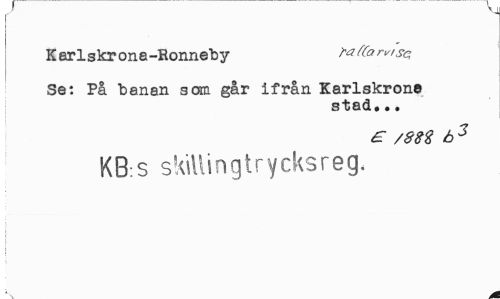 //// K ar 1 s kr one -Ronneby tetCawss• //// Se: På banan som går ifrån Karlskrone //// stad*.. //// £ /S82 63 //// KB.s skillingtrycksreg, //// i //// k m ////