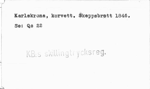 //// Karlskrona, korvett. Skeppsbrott 1846. Se: Qo 22 //// KB: 3 SAiUitlQ J | i //// K. ////