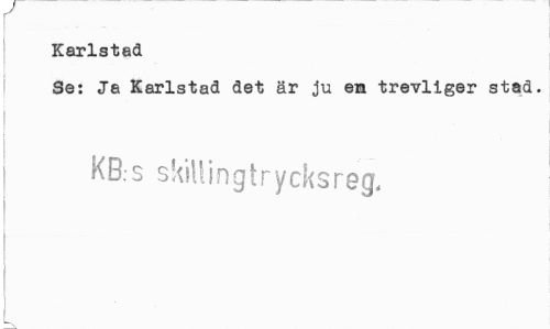//// r //// Karlstad //// Se: Ja Karlstad det är ju em trevllger stad. //// i //// ¦ //// j KB.s skiUingtrycksreg, ////