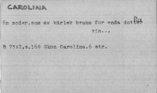 //// CAROLINA //// En moder,aom av kärlek brann for ^nda dot fe //// sin. ., //// B 7?:2,s.l69 Skon Carolina.5 str. ////