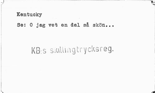 //// Kentucky //// Se: O jag vet en dal så skön... //// KB;S s killin gt rycks reg. ////