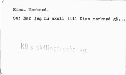 //// Kisa. Marknad, //// Se: När jag nu skall till Kisa marknad gå.., //// KB.s skillingtrycksreo ////