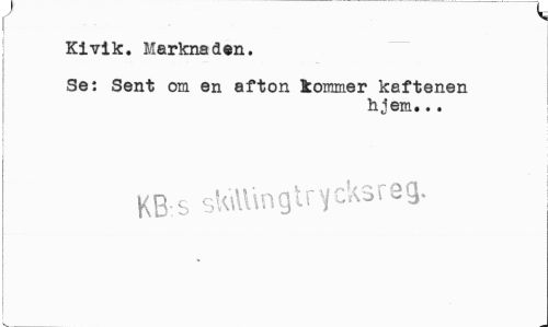 //// > x //// Kivik. Marknaden. //// Se: Sent om en afton kommer käftenen //// hjem... //// KB:S sKAUngtrycksreg. ////