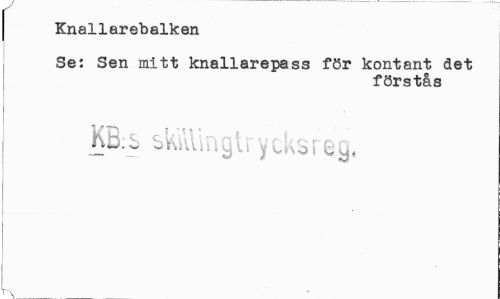 //// Knallarebalken //// Se: Sen mitt knallarepass för kontant det //// förstås //// i //// i KB* skillmglr yiksre^ //// ¦ ////