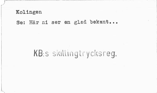 //// y //// Kolingen //// Se: Här ni ser en gled bekant... //// KB;S skiilingtrycksreg. ////