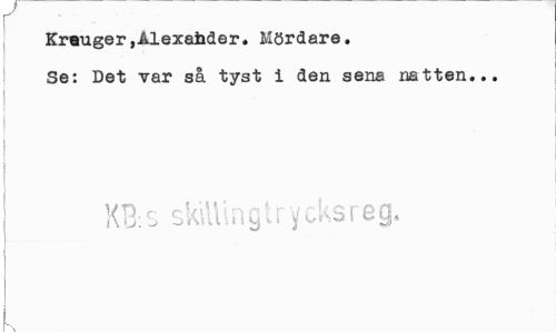//// r //// Kreuger jÅlexaMer. Mördare. //// Se: Det yar så tyst i den sena natten... //// j //// KB: s skiUingtr y eks re g. //// L ////