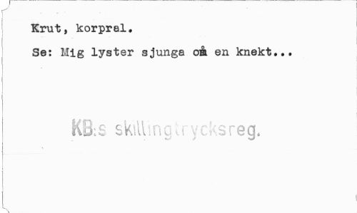 //// Krut, korpral. //// Se: Mig lyster sjunga oå en knekt... //// KB:S skilhng<rvcksreg. //// i ////