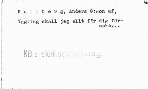 //// / "1 Kullberg, Anders C:son af, //// Yngling skall jag allt för dig försaka... //// KB:S skilliiu . c... //// j -W ////