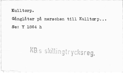 //// Kulltorp. //// Gånglåtar på marschen till Kulltarp... Se: Y 1864 h //// KB:s skillingtrycksreg, //// SfT ^^."-ttBC;--- ////