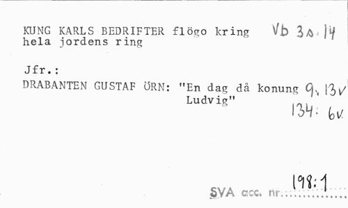 //// KUNG KARLS BEDRIFTER flögo kring \f b 3A (ty hela jordens ring //// Jfr. : //// DRABANTEN GUSTAF ÖRN: "En das; då konung Cj,t fty //// Ludvis" u //// lUi //// SVA ccc. t ... ////