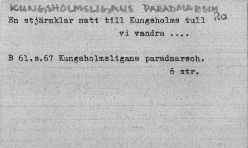 //// En stjärnklar natt till Kungsholms tull //// vi vandra ... //// B 61.s.67 Kungsholmsligans paradmarsch. //// 6 str. ////