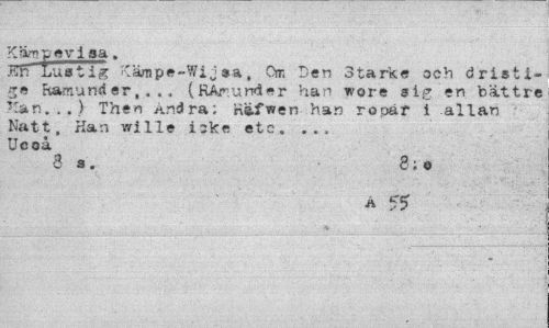 //// Kämpftvl sa . //// Lustig Känjpe-WiJ»ä , Orr. Den Starke och dristige Ftamund er, . . . (RA/nund-r han wore sig en bättre Tan..,) Then Andra; Häfwen han rooaf i allan Natt, Han wille iske etc. ... Ueoå //// 8a. 8;o //// A 55 ////