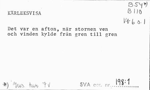 //// Ö-5 ^f v //// KÄRLEKSVI SA Öl/O //// ^ lo I //// Det var en afton, när stormen ven och vinden kylde frän gren till gren //// *) 'tyufc. Wv 1N SVA ccc. nr,. Mit... ////