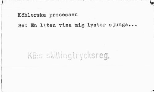 //// i //// Köhlerska processen //// Se: En liten vise mig lyster sjunga... //// KB:s skiUingtrycksreg. ////