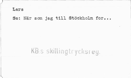 //// Lars //// Se: När som jag till Stöckholm for... //// KB:s >killingtrycksfey, //// k ////