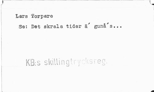 //// Lars '1'orpare Se: Det skrala tider ä' gunå's... //// | K3:s skillingti / sreg. ////