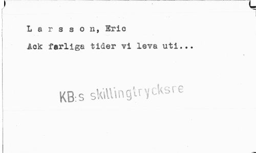 //// v //// i //// Larsson, Eric //// Ack farliga tider vi leva uti... //// KB:S skiWingUycksre ////