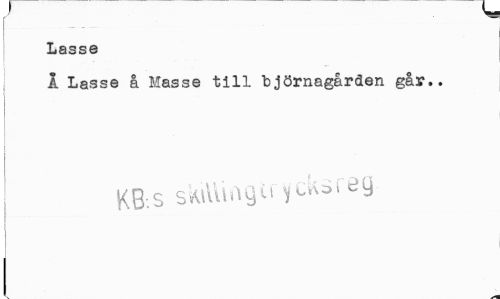 //// 7 w //// Lasse //// I Lasse å Messe till björnagården går.. //// KB-.s sWiViingit ^srey ////