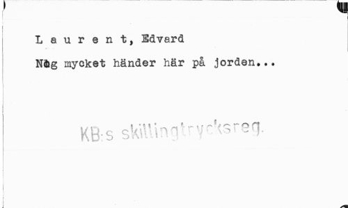 //// II! //// L a u r e n t, Edvard //// Nig mycket händer här på jorden... //// K8:S sk\Uhn/""yrHsreq. ////